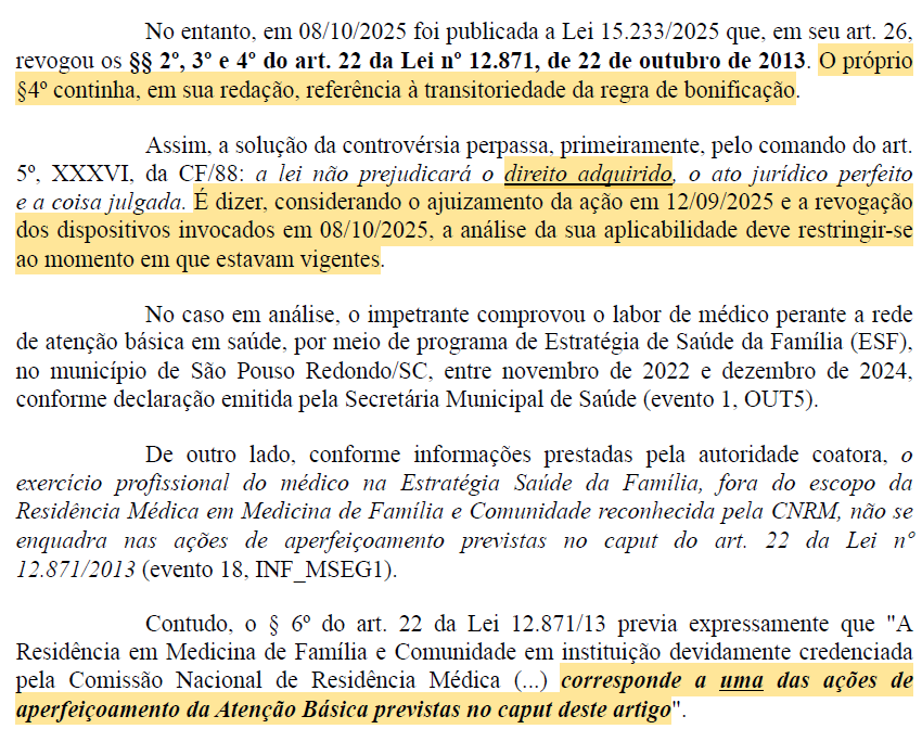 ↳ “A nova lei mudou, agora a bonificação é só para quem fez Residência em Medicina de Família e Comunidade.”